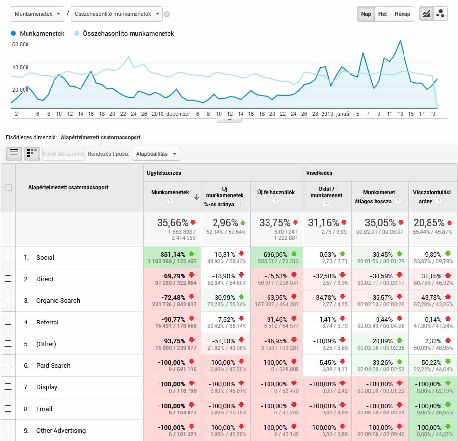 Ebben a jelentésben megnézheted, hogy konverzióid mely forrásokból származnak. Meglehet, hogy a közösségi forrásból érkező forgalom nem konvertál majd jól, mert sokan csak meglátnak egy hivatkozást például egy Facebookon, és azért kattintanak rá, hogy megnézzék a webáruház kínálatát, nem pedig azért, hogy vásároljanak.