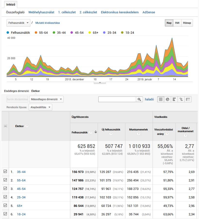 Ezek a jelentések sokat elárulnak webhelyed felhasználóiról, például hogy mekkora arányban látogatják nők és férfiak, vagy hogy milyen korcsoportokat képviselnek (Demográfiai adatok), illetve hogy mik iránt érdeklődnek (Érdeklődési körök).