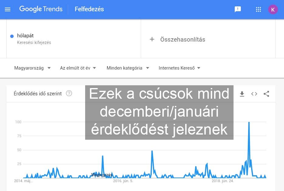 Ha beírjuk, hogy „hólapát”, akkor mindjárt láthatóvá válik, hogy egy olyan termékről van szó, amit az emberek többnyire a tél beállta előtt keresnek rá.